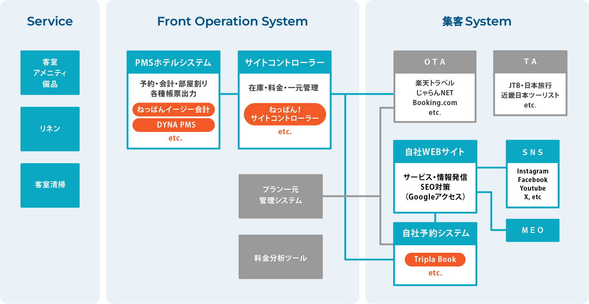 在庫や料金を一元管理し、複数OTAでの販売をスムーズに行うためのシステムです。